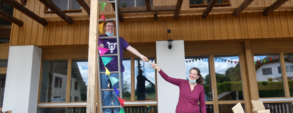 Später haben wir uns um die „Verschönerung“ unserer Kita und des Gartens gekümmert. Fleissig wurden der Bauwagen gestrichen, gejätet, Fähndli aufgehängt, ausgemistet und neue Spielangebote und „Dinge“ zum Entdecken hergerichtet.